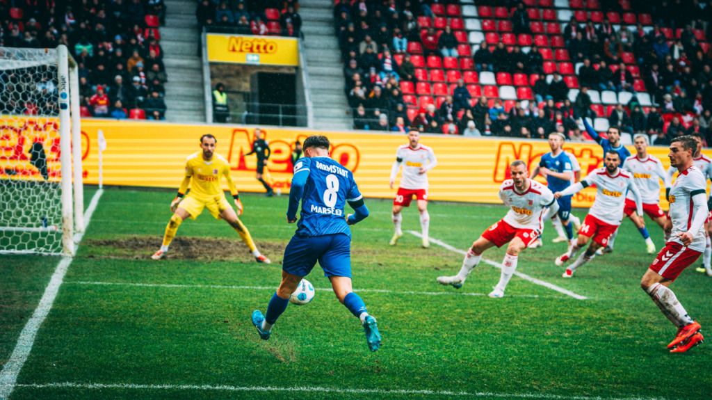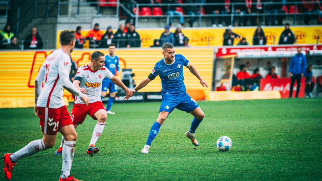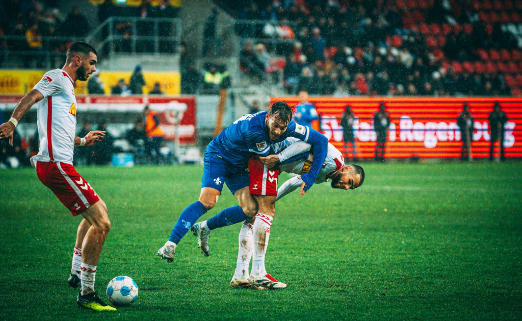 Things hardly changed in the last few minutes before half-time, the Darmstadt team had difficulty finding a way through against strong Regensburg players and so they went into the break without any goals.