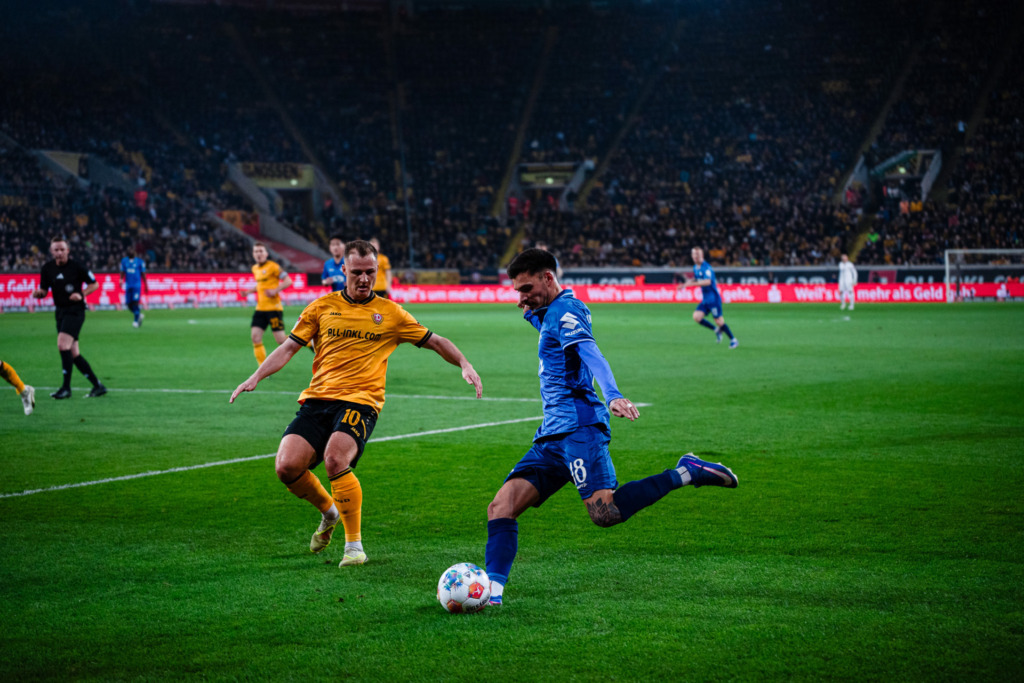 In der Nachspielzeit der ersten Halbzeit nutzten die Gastgeber den Raum und Vermeij brachte die Dresdner mit einem Doppelpack (45.+1, 45.+2) in Front.