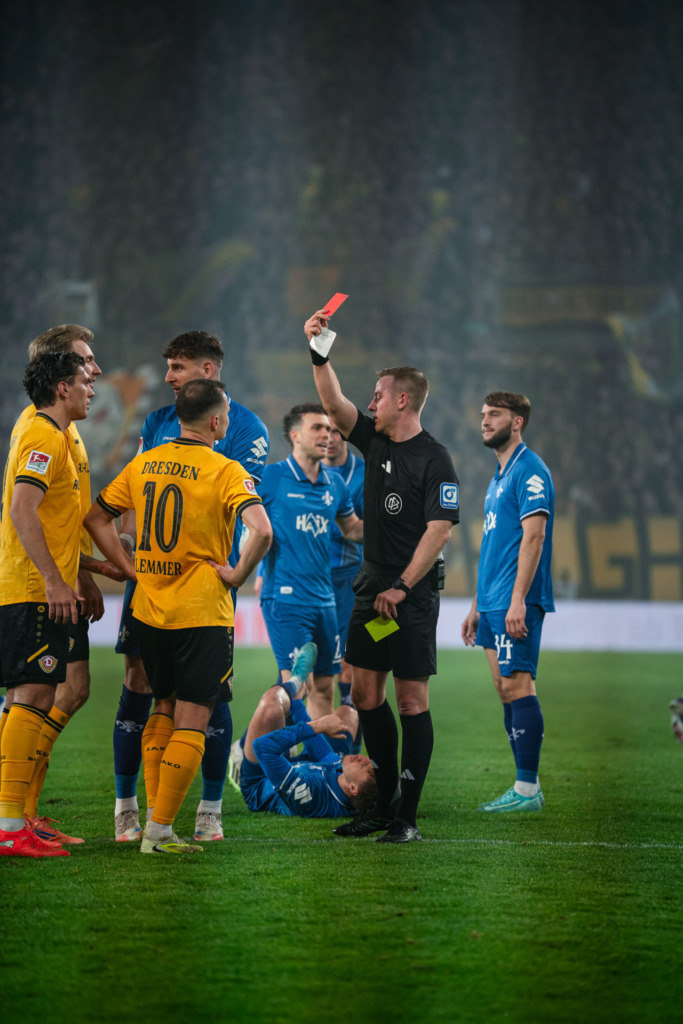 Zum ersten Mal seit Oktober beenden die Lilien ein Ligaspiel ohne Zählbares: Mit 1:3 (0:2) unterliegt der SV 98 bei der SG Dynamo Dresden. Nach einer strittigen Roten Karte gegen Pfeiffer (42.) brachten die Hausherren zwei Tore in der Nachspielzeit des ersten Durchgangs auf die Siegerstraße.