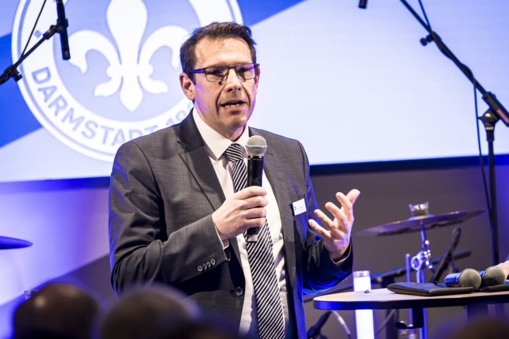 Eröffnet wurde der Abend dann von Stadionsprecher Colin Mahnke und dem ersten Redner – Präsident Rüdiger Fritsch. Fritsch blickte voller Stolz auf ein „wahnsinnig erfolgreiches Jahr 2023“ zurück, in dem die Lilien nicht nur ihren 125. Geburtstag begingen und die neue Haupttribüne einweihten, sondern auch den Aufstieg feiern konnten. Hinsichtlich der restlichen Saison zeigte sich der Präsident kämpferisch: „Wir wollen Meister über dem Strich werden. Gemeinsam packen wir das!“