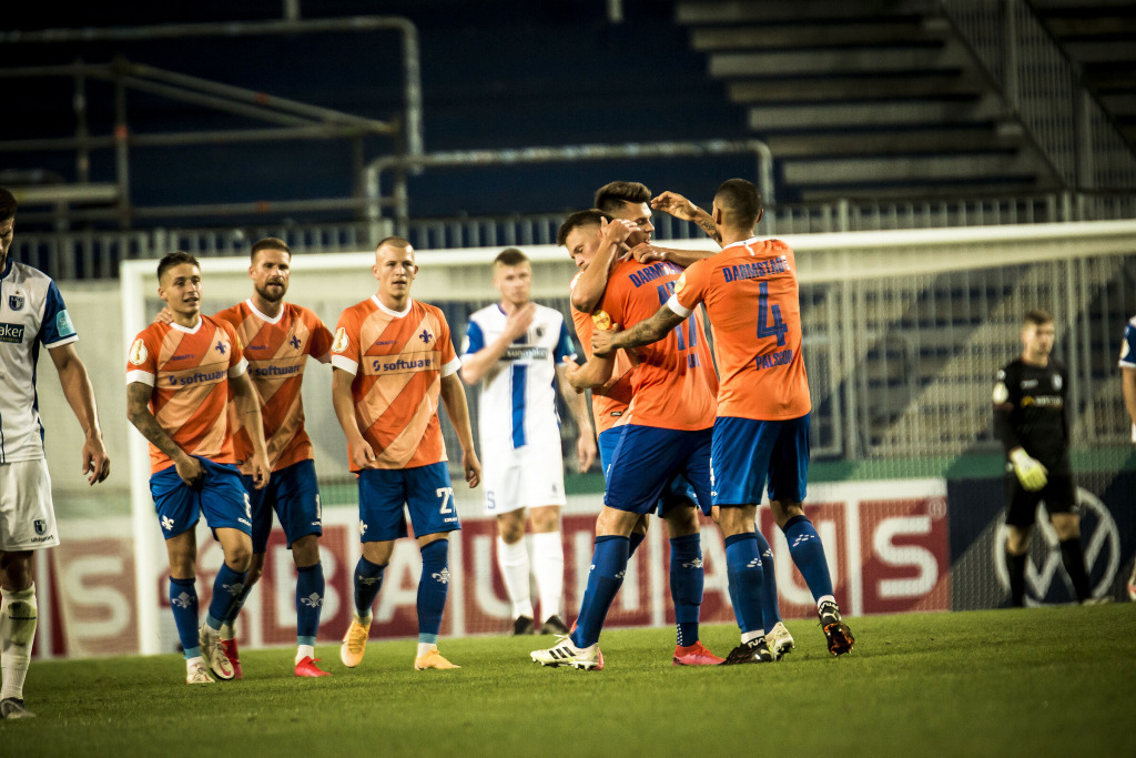 Sowohl Marvin Mehlems Anschluss- als auch Kempes Ausgleichstreffer entsprangen aus einem dieser vertikalen Zuspiele, die schlussendlich den Schlüssel zum Erfolg bildeten. „Der Trainer hat uns gesagt, dass die Kette hochsteht und wir diesen Raum bespielen müssen“, verriet Mathias Honsak, dessen Siegtor in der Verlängerung ebenfalls nach diesem Muster fiel. Und doch war es nicht allein das richtige Konzept gegen die Abwehrkette der Magdeburger, welches für den Einzug in die nächste Pokalrunde sorgte. Die fußballerische Lösung wurde ergänzt durch die Eigenschaften, die an einem solchen Pokalabend ebenfalls unabdingbar sind. „Das zeigt unseren Charakter“, bilanzierte Kempe mit Blick auf die Willensleistung der Lilien, während Honsak von einem „anderen Gesicht“ sprach, das die Darmstädter mit Beginn der zweiten Hälfte zeigten.