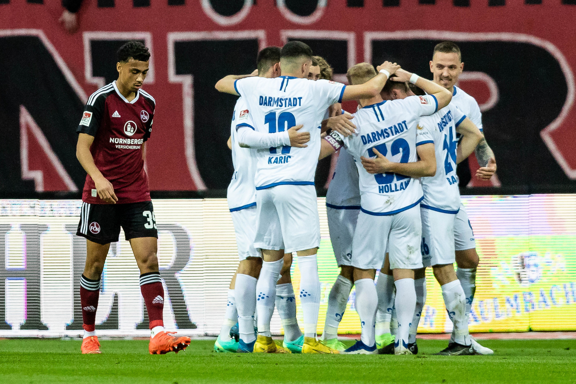 Offenbar das Aufbruchsignal für die Gäste, die fortan präsenter in Erscheinung traten. Und nach 26 Minuten die nächste dicke Chance hatten: Tietz legte einen Ball geschickt auf Stojilkovic ab, dessen Direktabnahme aus rund 16 Metern verfehlte das Ziel nur knapp. Und in der 31. Minute konnten die Südhessen dann die Führung bejubeln: Eine Bader-Flanke gelangte über den Nürnberg Innenverteidiger Schindler in das Netz – Eigentor zum 1:0. In der Folge blieb Darmstadt am Drücker und hatte mehrere aussichtsreiche Situationen, die jedoch allesamt ungenutzt blieben.