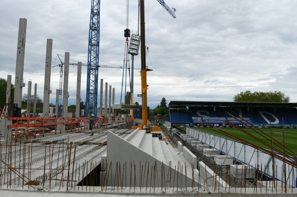 On Saturday (March 1st) it was four years ago that the foundation stone for the new main stand of the Merck Stadium at Böllenfalltor was laid. The foundation stone capsule was filled with a Lily jersey from the 2020/21 season and a copy of the Darmstädter Echo dated March 1st. “It’s incredibly fun to watch the progress on the construction site. With every stone we lay, we come closer to our goal of adequate rooms for our spectators, sports, sponsors, media and security providers,” said Rüdiger Fritsch, President of SV Darmstadt 98, at the time.