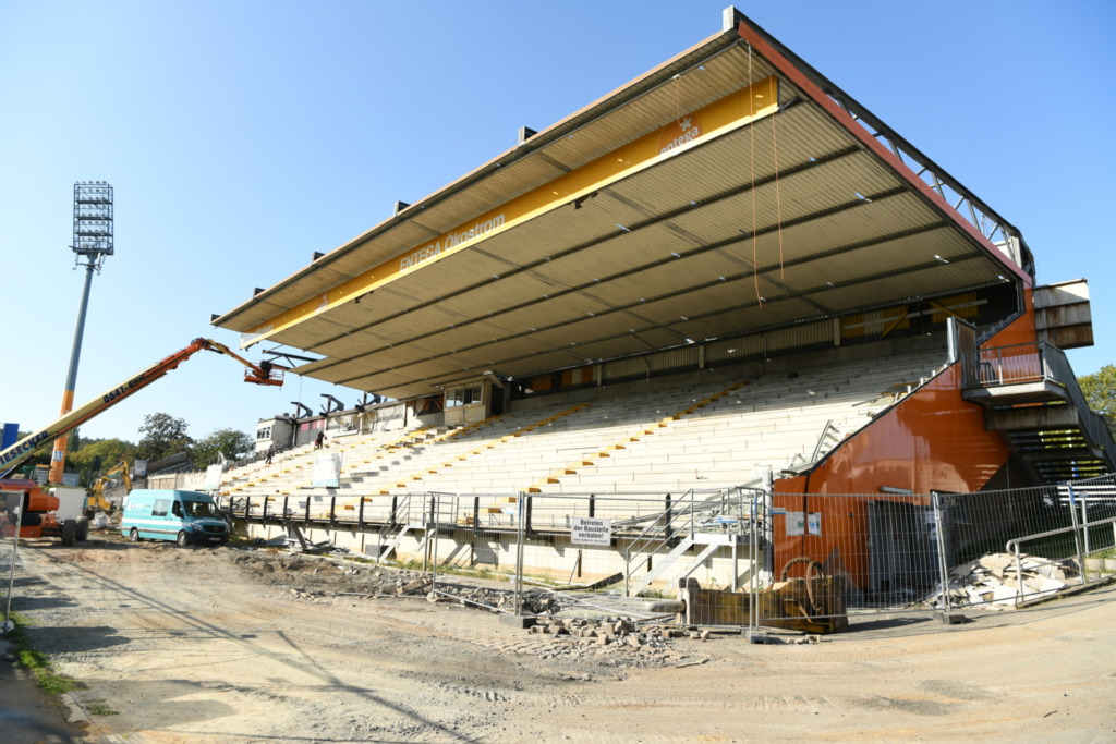 From demolition to laying the foundation stone and construction to opening. In our picture slider we take you through the past years of our main stand: