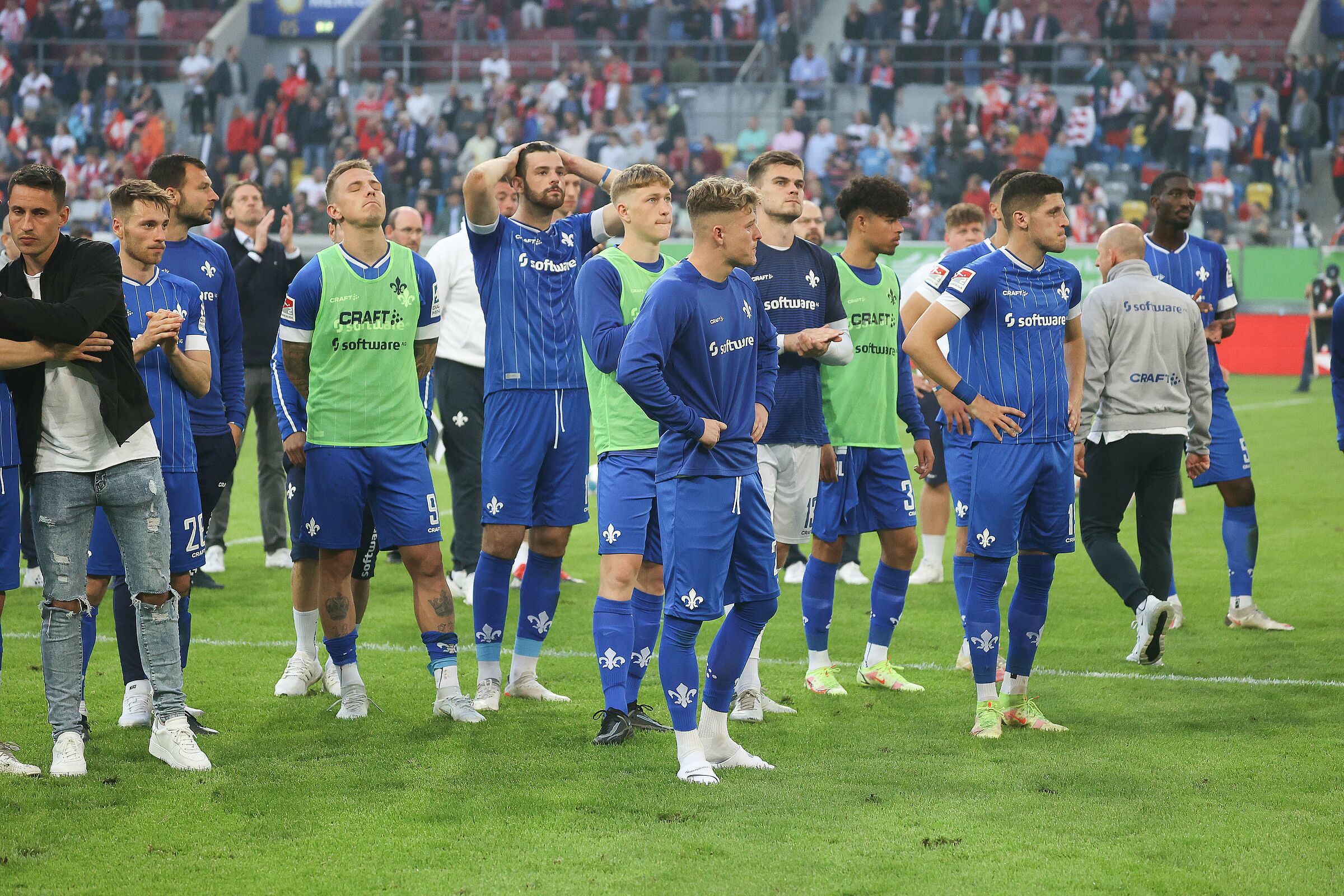 „Wir haben von Beginn an gezeigt, warum wir diese Serie haben. Wir hatten brutale Dominanz auf dem Platz. Das war genau das, was wir im Positionsspiel wollten. Im ersten Durchgang hatten wir die Lösungen für das Darmstädter Spiel, hätten aber aus unserer Dominanz noch mehr Vorteile ziehen müssen. Man hat aber auch gesehen, dass wir Probleme bekommen haben, wenn wir nicht die nötige Ordnung hatten. Nach der Pause hat es Darmstadt dann taktisch richtig gut gemacht. Das war sehr herausfordernd für uns. Sie haben Druck gemacht und verdient den Anschlusstreffer erzielt. Wir dagegen haben offensiv nicht mehr stattgefunden. Doch vor allem unsere Leidenschaft und Intensität war oberstes Regal von meinen Jungs. Zum Schluss möchte ich noch sagen, dass ich einer von denen bin, die den Darmstädtern die Daumen drücken. Sie spielen eine brutal starke Saison und erst am Ende kackt die Ente. Das ist nach dem 34. Spieltag.“