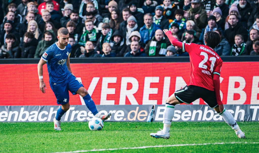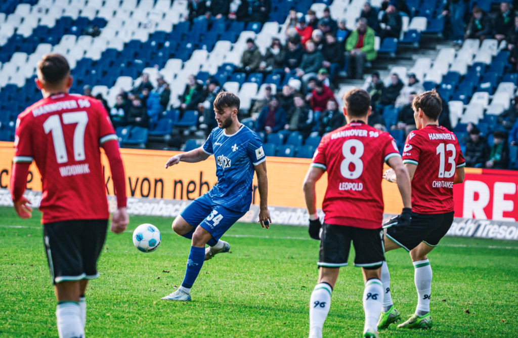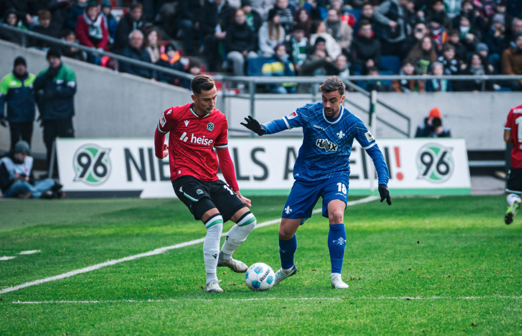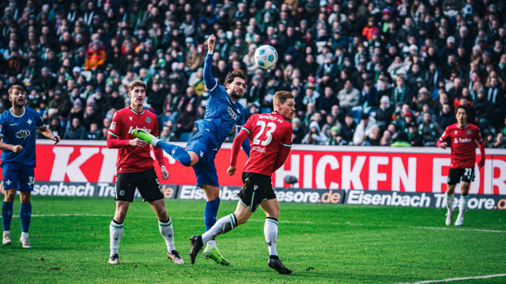 The initial phase of the away game at Hannover 96 clearly went to the guests from southern Hesse. The Lilies recorded their first goal after just 23 seconds, but Philipp Förster’s attempt ended up in the arms of goalkeeper Zieler. Two minutes later Förster tried again, but this time the ball flew past the goal. With around 70% ball possession and 5:1 shots, the statistics at the start of the game also spoke in favour of the Lilies.