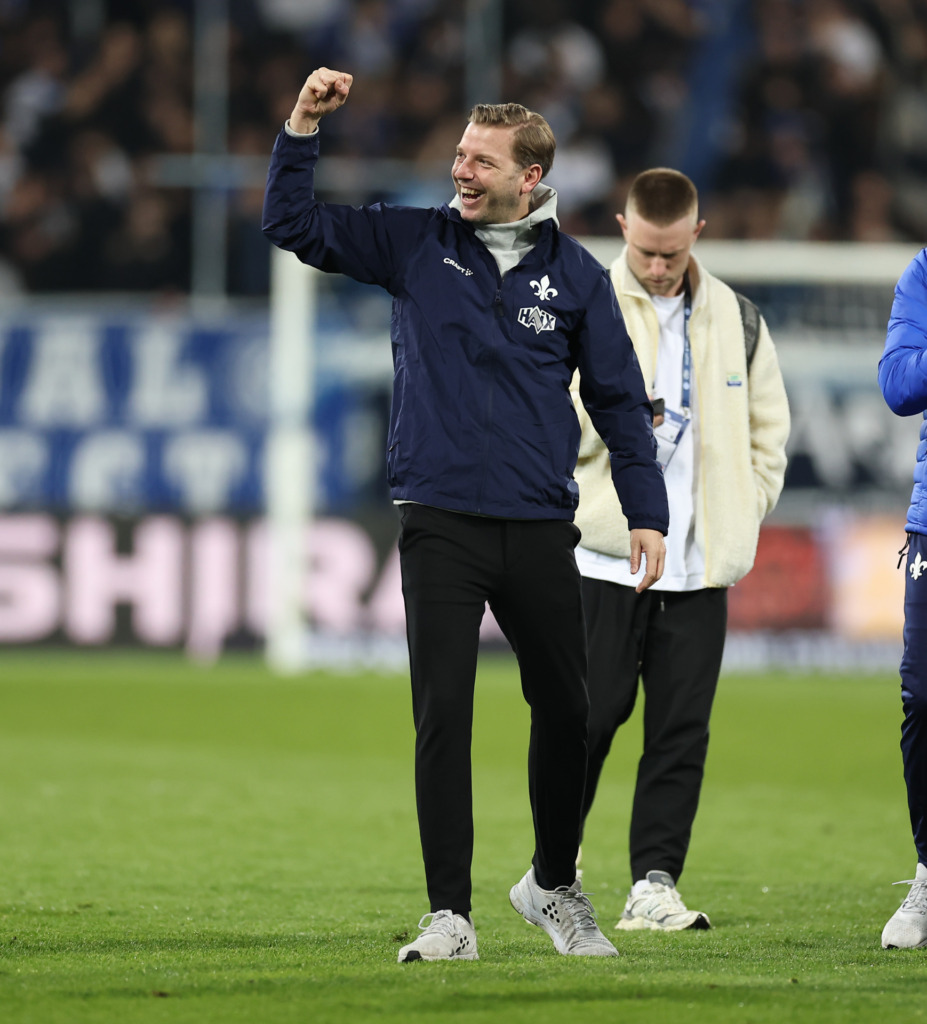 Stability. After last weekend, much was written and talked about (and rightly so) how it was possible that the Lilies could concede four goals in the last half hour in Magdeburg after an excellent 60 minutes. Against Karlsruhe, on the other hand, coach Florian Kohfeldt’s team never let their opponents get into the game after the opening phase. The South Hesse team also repeatedly launched dangerous attacks. In the second half in particular, one or two brilliant saves by KSC goalkeeper Max Weiß prevented the score from getting even higher. „Our best man was the goalkeeper, which is rarely good when you’re 3-0 down,“ commented KSC coach Christian Eichner dryly. Kohfeldt saw a totally united, „very good team performance from almost every player“ and added: „Overall, it was really good and the play was very, very mature.“